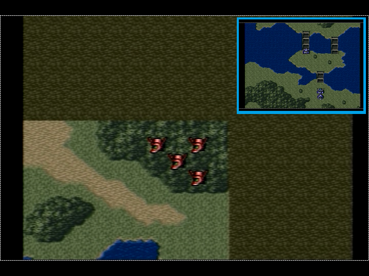 マップ中央上部の小島にかかる、下側の橋を2機が渡りきると、増援登場します。挟み撃ちらしいですが大したことはないです。