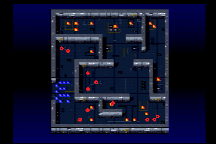 あしゅら男爵撃破後、次の敵軍ターンで増援が発生します。赤丸は増援発生位置。- 基地内での戦闘ということで戦艦は出せません。