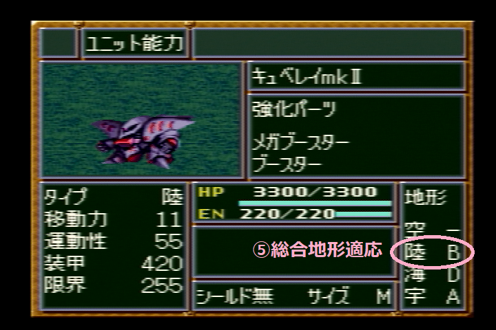 ※ユニットの地形適応とパイロットの地形適応で決まります。