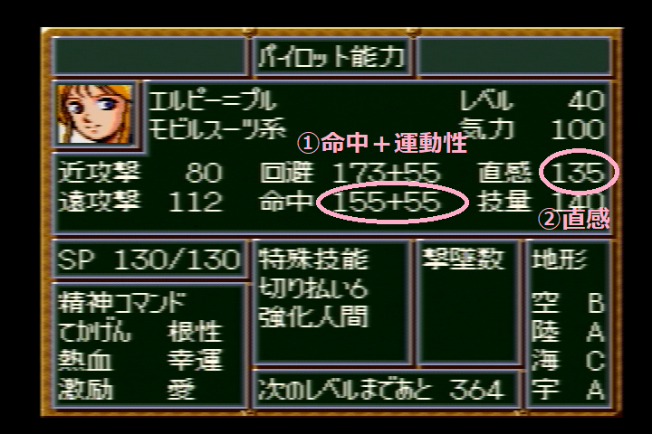 ①命中+運動性(≦限界) (攻撃側)210
