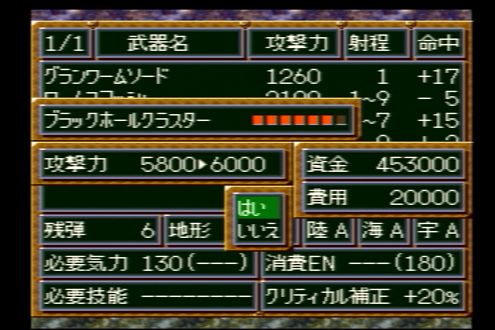 段階HP(+300)EN(+10)装甲(+50)運動性(+4)限界(+10)