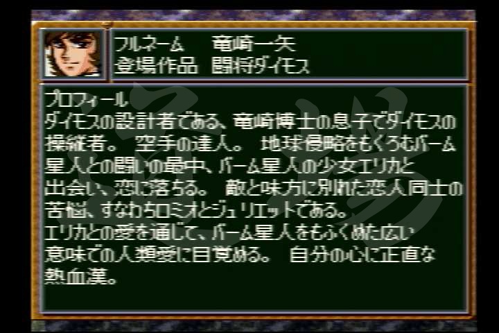 | 実は味方パイロットの中で、万丈に次いで近攻が高い。ユニットが頼りないのが残念。 |