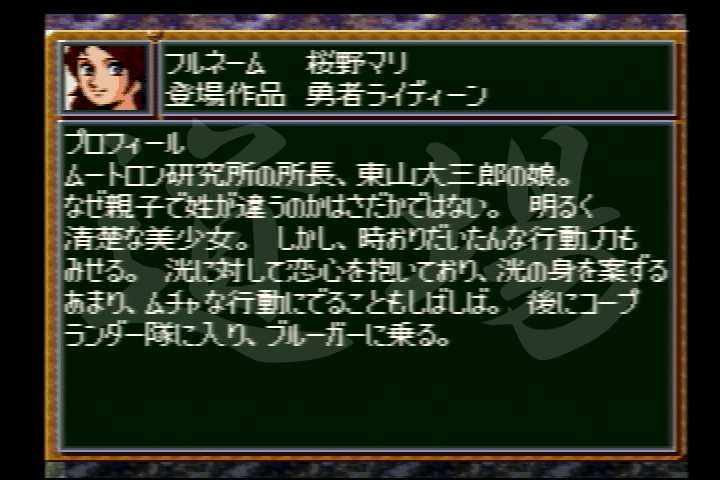 夕月京四郎との2択。精神コマンド的にナナの方がいいので、育てるつもりならこちらを選ぼう。