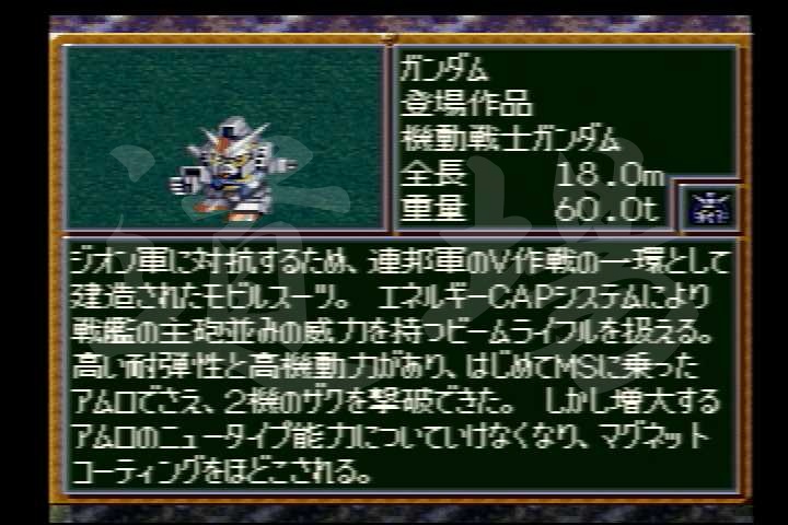![]() 【PS】ガンキャノン | HP | EN | タイプ | 移動力 | 運動性 | 装甲 | 限界 |