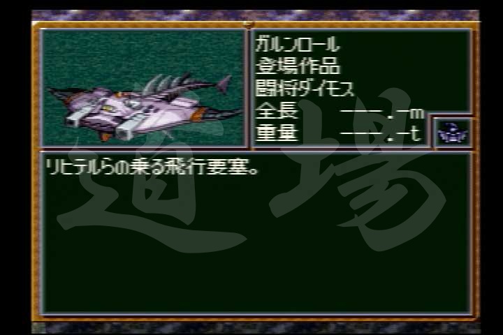 【PS】ガルンロール | HP | EN | タイプ | 移動力 | 運動性 | 装甲 | 限界 |