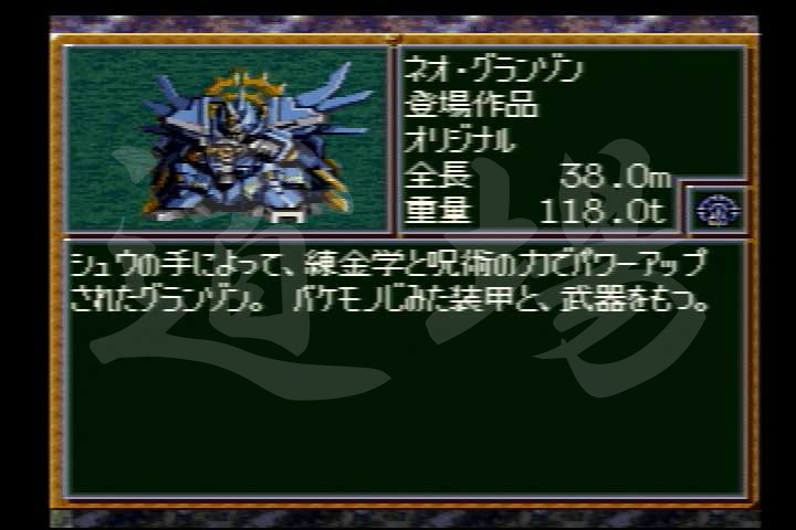 【PS】ネオ・グランゾン | HP | EN | タイプ | 移動力 | 運動性 | 装甲 | 限界 |