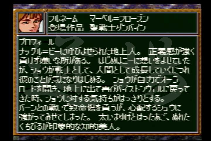 ![]() 【SFC】マーベル=フローズン | 近攻 | 遠攻 | 命中 | 技量 | 回避 | 直感 | SP |