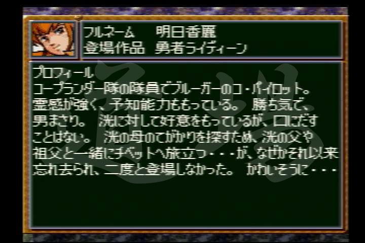 夕月京四郎との2択。精神コマンド的にナナの方がいいので、育てるつもりならこちらを選ぼう。