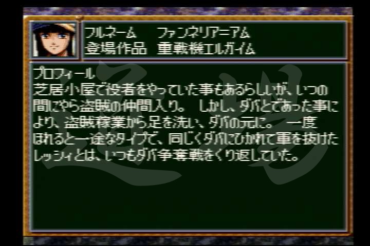 | 魂も持っておりスペックも優秀だが、エルガイム系に優秀なユニットが不足している。激励係もできる。 |