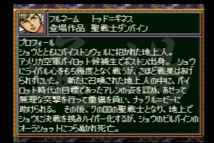 ![]() 【SFC】トッド=ギネス | 近攻 | 遠攻 | 命中 | 技量 | 回避 | 直感 | SP |