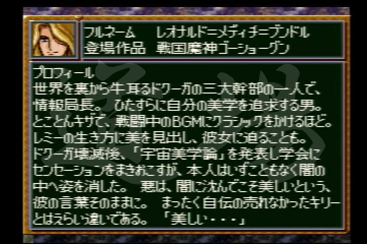 ![]() 【SFC】ヤッター=ラ=ケルナグール | 近攻 | 遠攻 | 命中 | 技量 | 回避 | 直感 | SP |