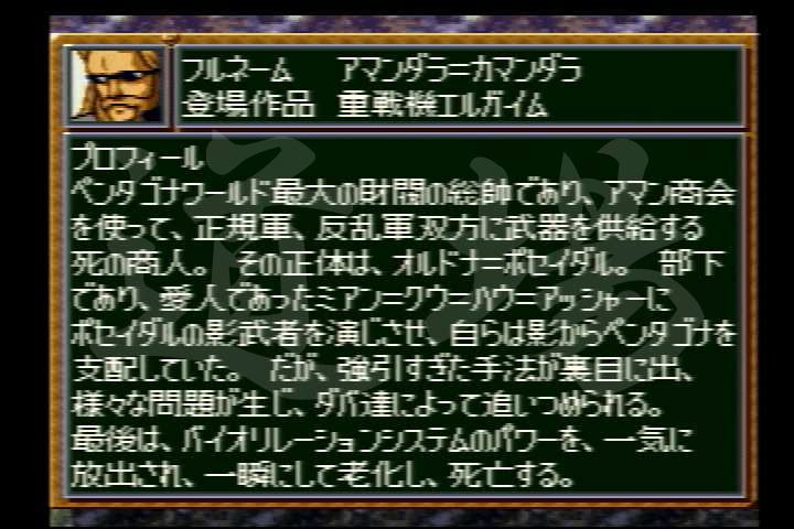 ![]() 【SFC】アマンダラ=カマンダラ | 近攻 | 遠攻 | 命中 | 技量 | 回避 | 直感 | SP |