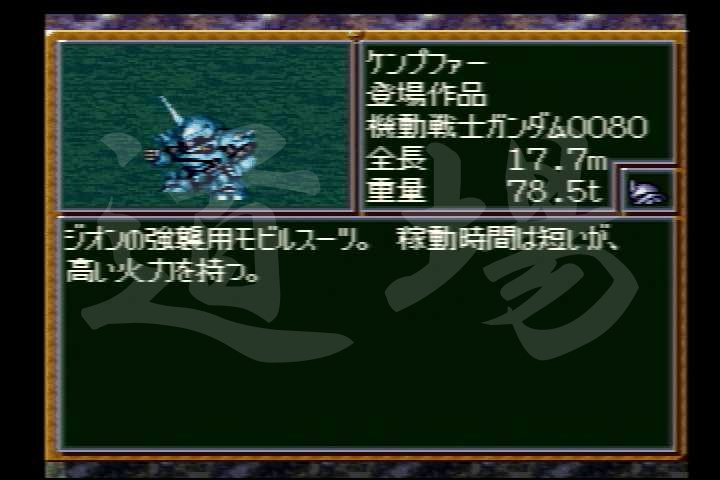 【SFC】旧ザク | HP | EN | タイプ | 移動力 | 運動性 | 装甲 | 限界 |