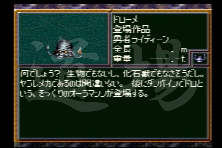 【SFC】ドローメ | HP | EN | タイプ | 移動力 | 運動性 | 装甲 | 限界 |